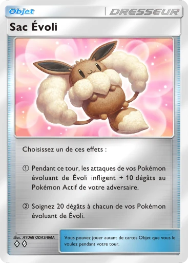 Choose 1:During this turn, attacks used by your Pokémon that evolve from Eevee do +10 damage to your opponent’s Active Pokémon.Heal 20 damage from each of your Pokémon that evolves from Eevee.