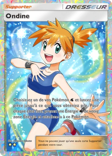 Choisissez un de vos Pokémon et lancez une pièce jusqu'à ce que vous obteniez pile. Pour chaque côté face, prenez une Énergie de votre zone Énergie et attachez-la à ce Pokémon.